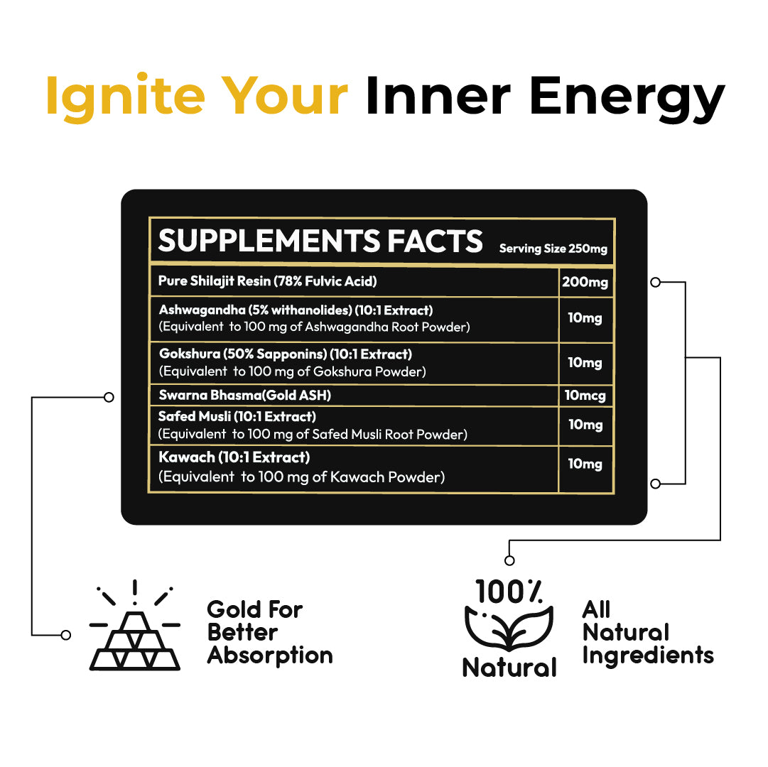 We are bringing you the most effective Shilajit available in the market. Sourced from the pristine heights of the Gilgit Mountains at 18,000 feet, Rasayanam Shilajit is untouched by human activity and nurtured by mineral-rich, ancient soils. It is processed as per the Vedic process, the Suryatapi method, ensuring it retains its natural potency and nutritional density.